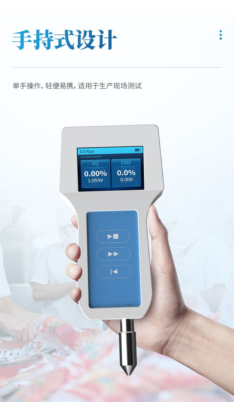 3.內置氣體傳感器,可精確分析軟、硬質包裝內部氣體含量;