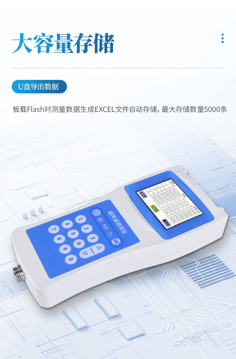 | 輸出、存儲 | U盤導出數據,板載FLASH對測量數據生成EXCEL文件自動存儲,最大存儲數量5000條。 |