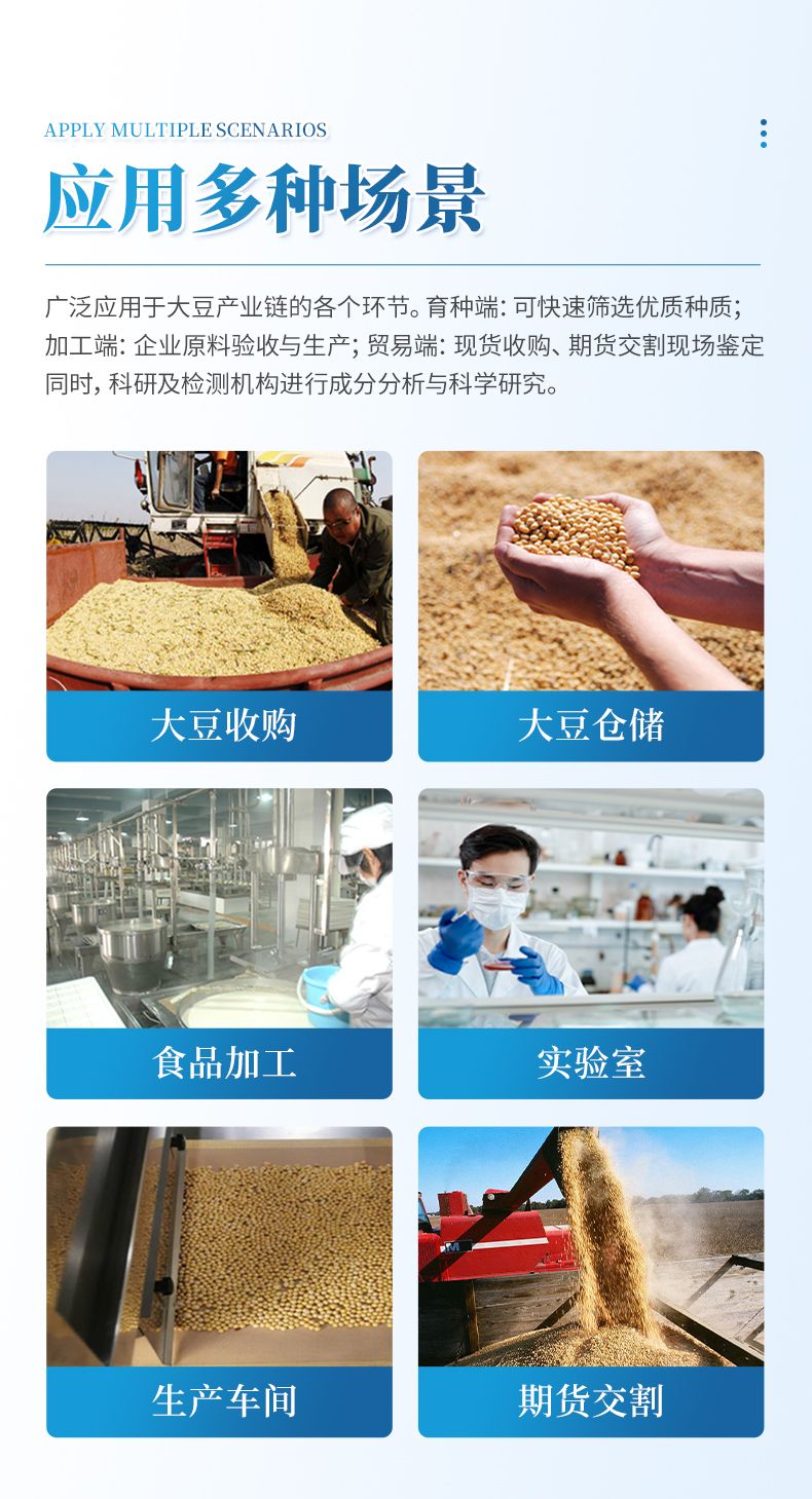 本儀器廣泛應(yīng)用于大豆產(chǎn)業(yè)鏈的各個(gè)環(huán)節(jié),為品質(zhì)管控與價(jià)值評(píng)估提供高效解決方案。在育種端,可快速篩選優(yōu)質(zhì)種質(zhì)資源;在加工端,服務(wù)于油脂、食品及飼料企業(yè)的原料驗(yàn)收與生產(chǎn)過程控制環(huán)節(jié);在貿(mào)易端,為現(xiàn)貨收購、期貨交割實(shí)現(xiàn)現(xiàn)場快速定價(jià)與品質(zhì)鑒定。同時(shí),它也是科研及檢測機(jī)構(gòu)進(jìn)行成分分析與科學(xué)研究的得力工具,全面覆蓋從田間到車間的精準(zhǔn)檢測需求。