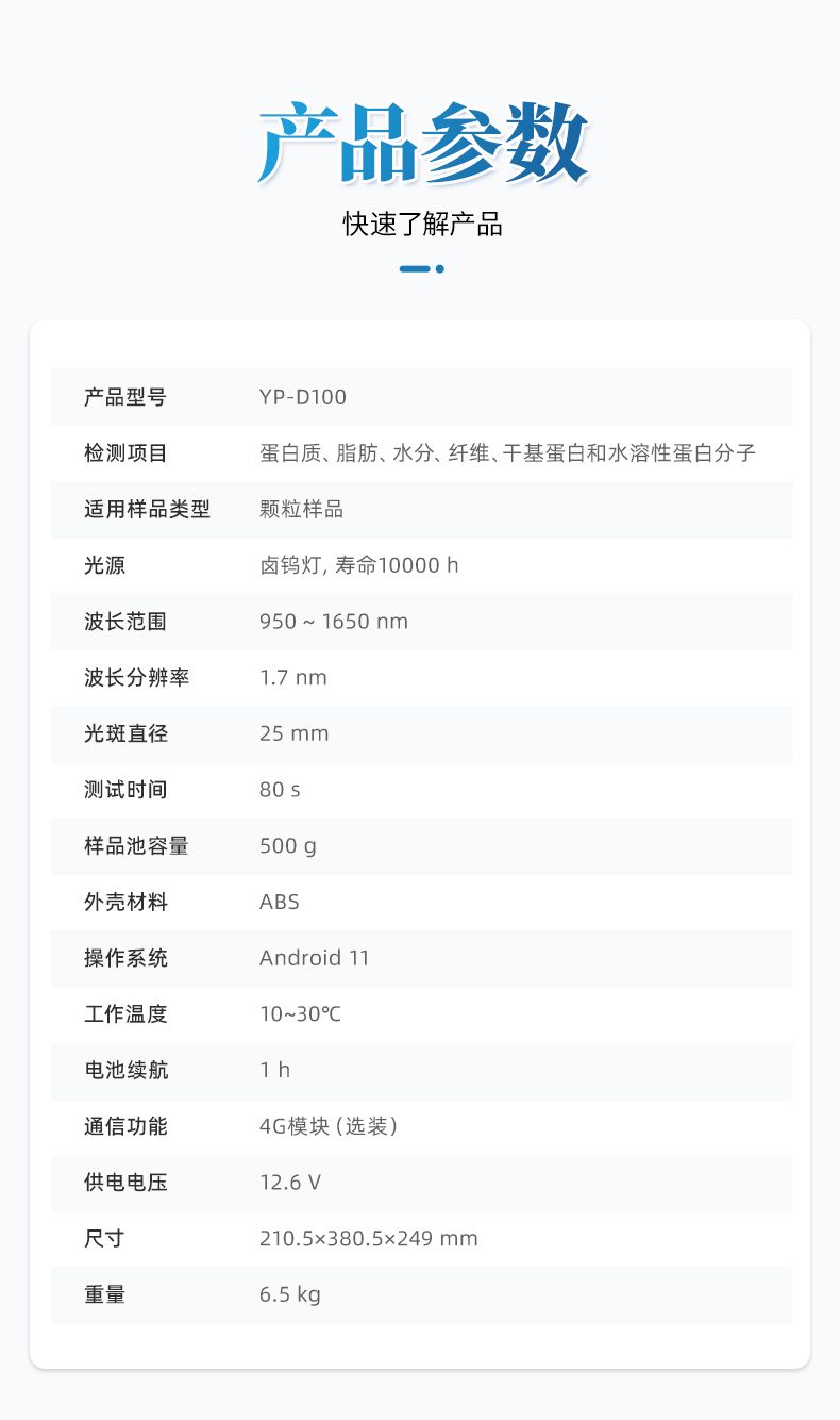 5. 檢測項(xiàng)目全:大豆中的蛋白質(zhì)、脂肪、水分、纖維、干基蛋白與水溶性蛋白;