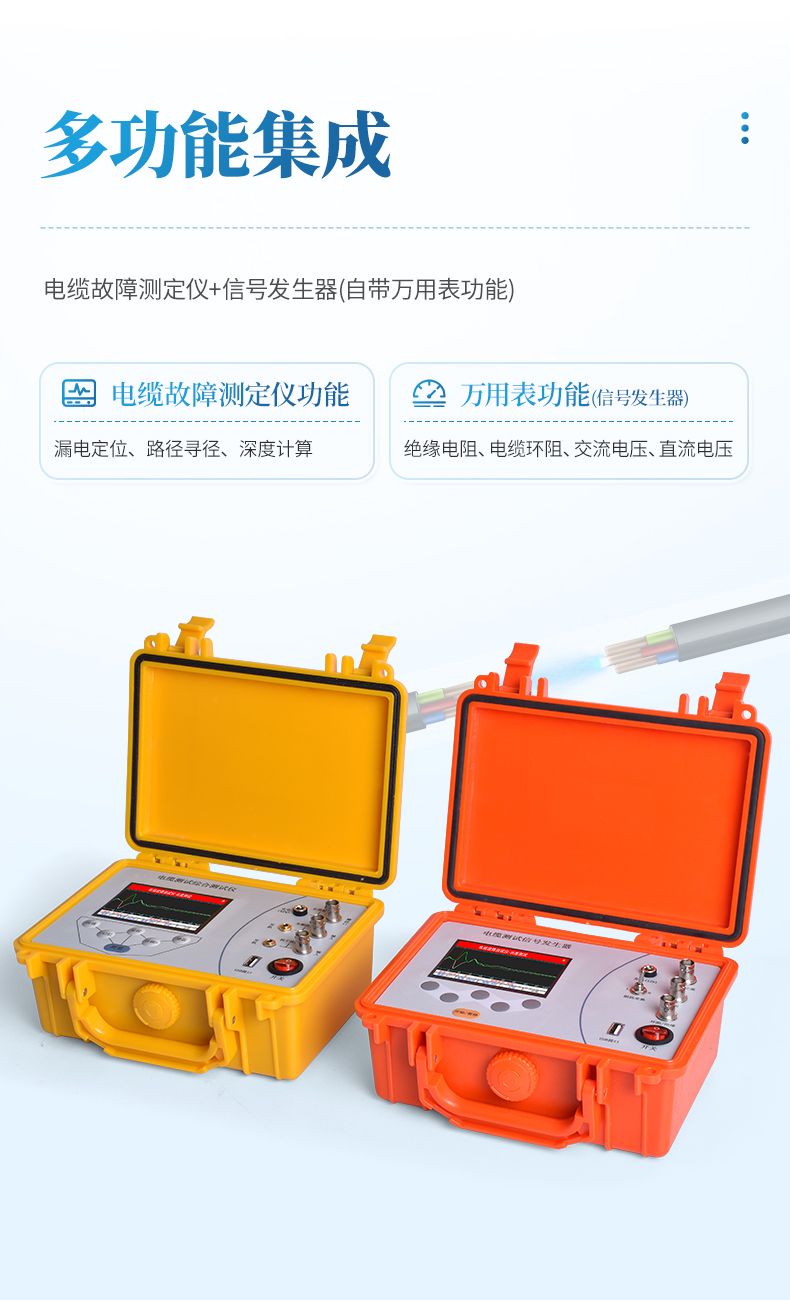 電纜故障測定儀是用于檢測電力電纜、通信電纜等故障的綜合性設備,可定位開路、短路、高阻故障等,并支持路徑探測。通過低壓脈沖法確定故障大致位置,配合聲磁同步技術精確定點?。