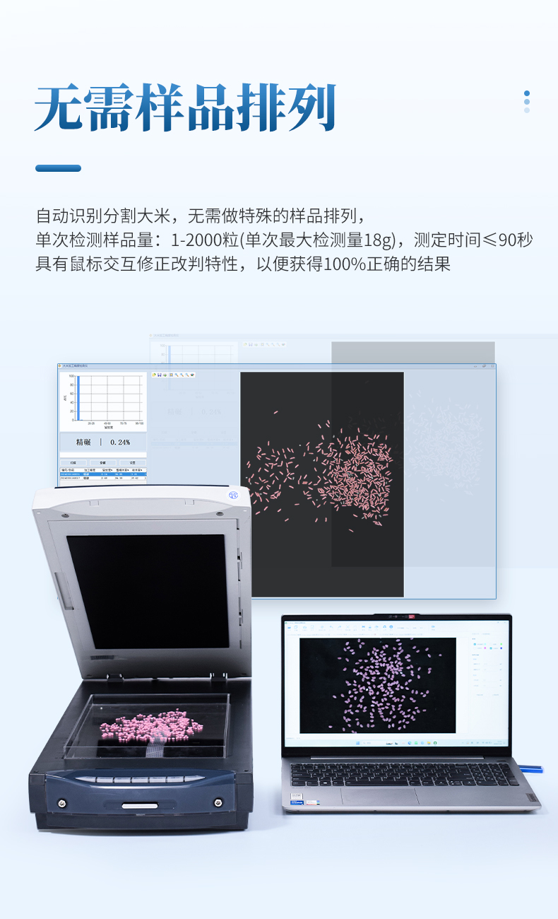 5、自動識別分割大米,無需做特殊的樣品排列,單次檢測樣品量:1-2000粒(單次最大檢測量18g),測定時間≤90秒。具有鼠標交互修正改判特性,以便獲得100%正確的結果。