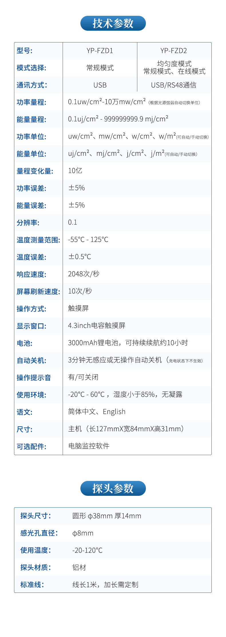功率量程:0.1uw/cm2-10萬mw/cm2(根據光源強弱自動切換單位)