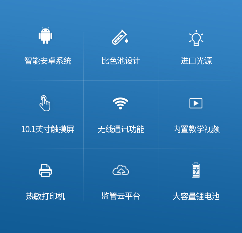 2、雙比色檢測系統,同時支持預制試管比色和比色皿比色;