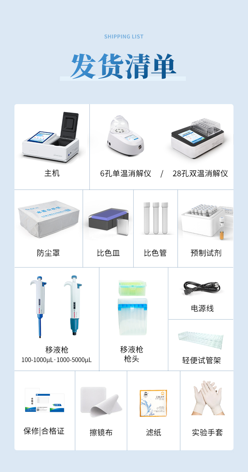 13、配備工廠預制試劑耗材,無需反復移液和配制濃硫酸,只需要在試管內加入水質樣品即可進行檢測。