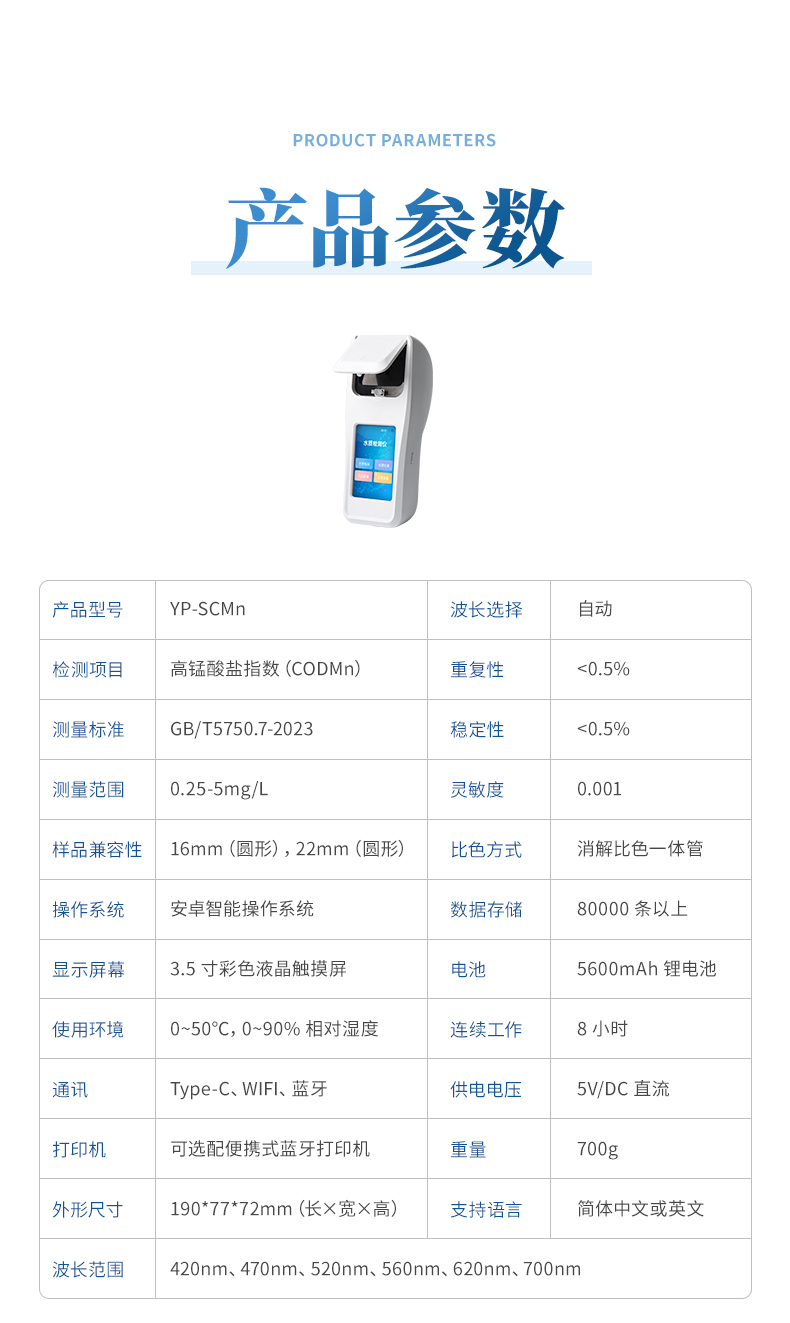 比色方式:預制比色試管16mm;比色皿50mm(含)以下;