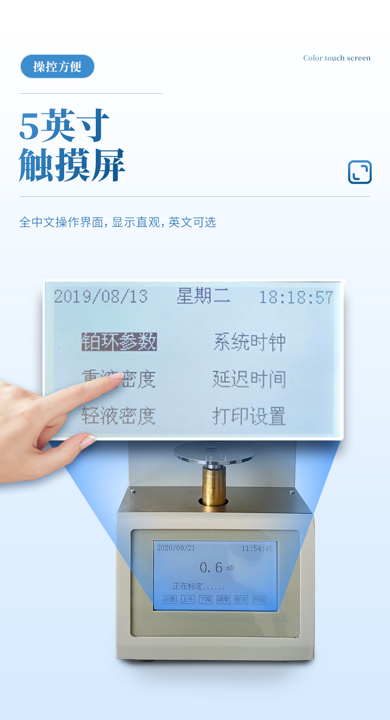 符合GB6541-86(ISO6295--1983)的方法要求,采用圓環(huán)法在非平衡的條件下,測量各種液體表面張力及礦物油與水的界面張力,能可靠的指示出親水氧化物的存在情況。采用最新數(shù)字處理技術(shù),提高了儀器的快速響應(yīng)能力和抗干擾能力,全中文交互式菜單,人機(jī)界面簡潔友好。 并可選配臺式熱敏微型打印機(jī),可自動打印測試結(jié)果。