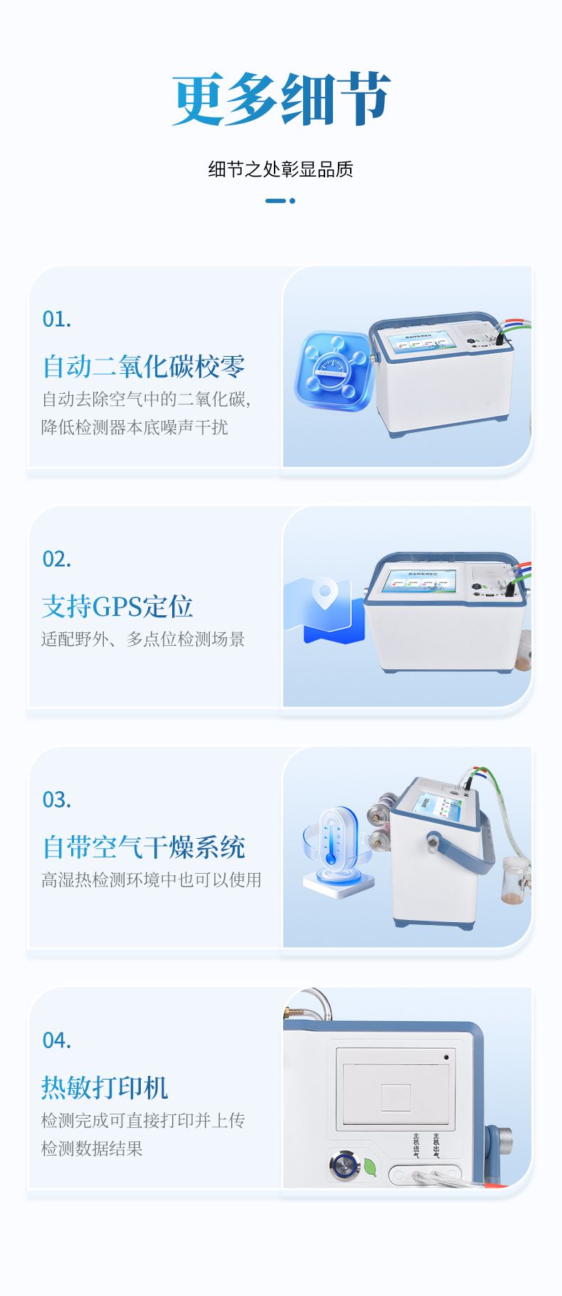 6、★自動二氧化碳校零,自動去除空氣中的二氧化碳,降低檢測器本底噪聲干擾。