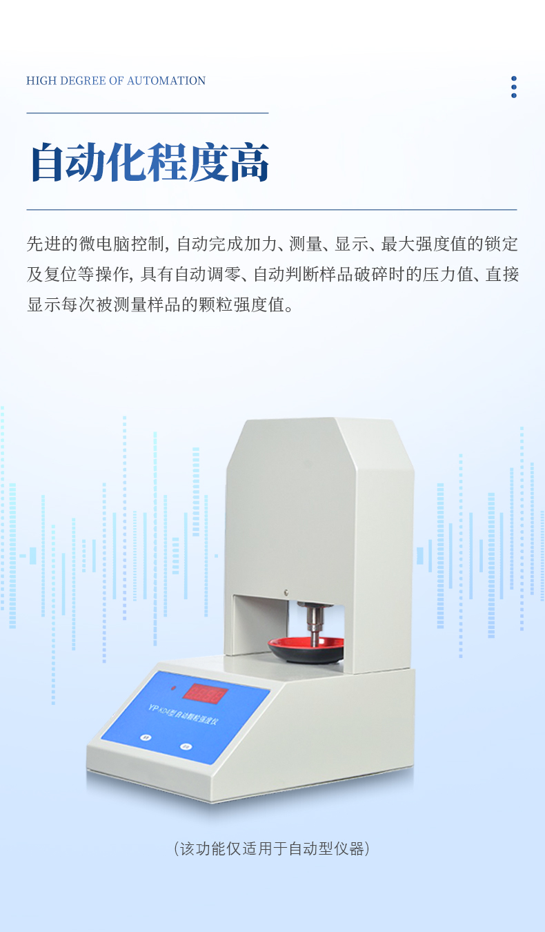 儀器采用先進(jìn)的微電腦控制,自動(dòng)完成加力、測(cè)量、顯示、最大強(qiáng)度值的鎖定及復(fù)位等操作,具有自動(dòng)調(diào)零、自動(dòng)判斷樣品破碎時(shí)的壓力值、直接顯示每次被測(cè)量樣品的顆粒強(qiáng)度值。是催化劑、化肥、藥品、水果等顆粒樣品聚合強(qiáng)度測(cè)定最理想的新型試驗(yàn)儀器。