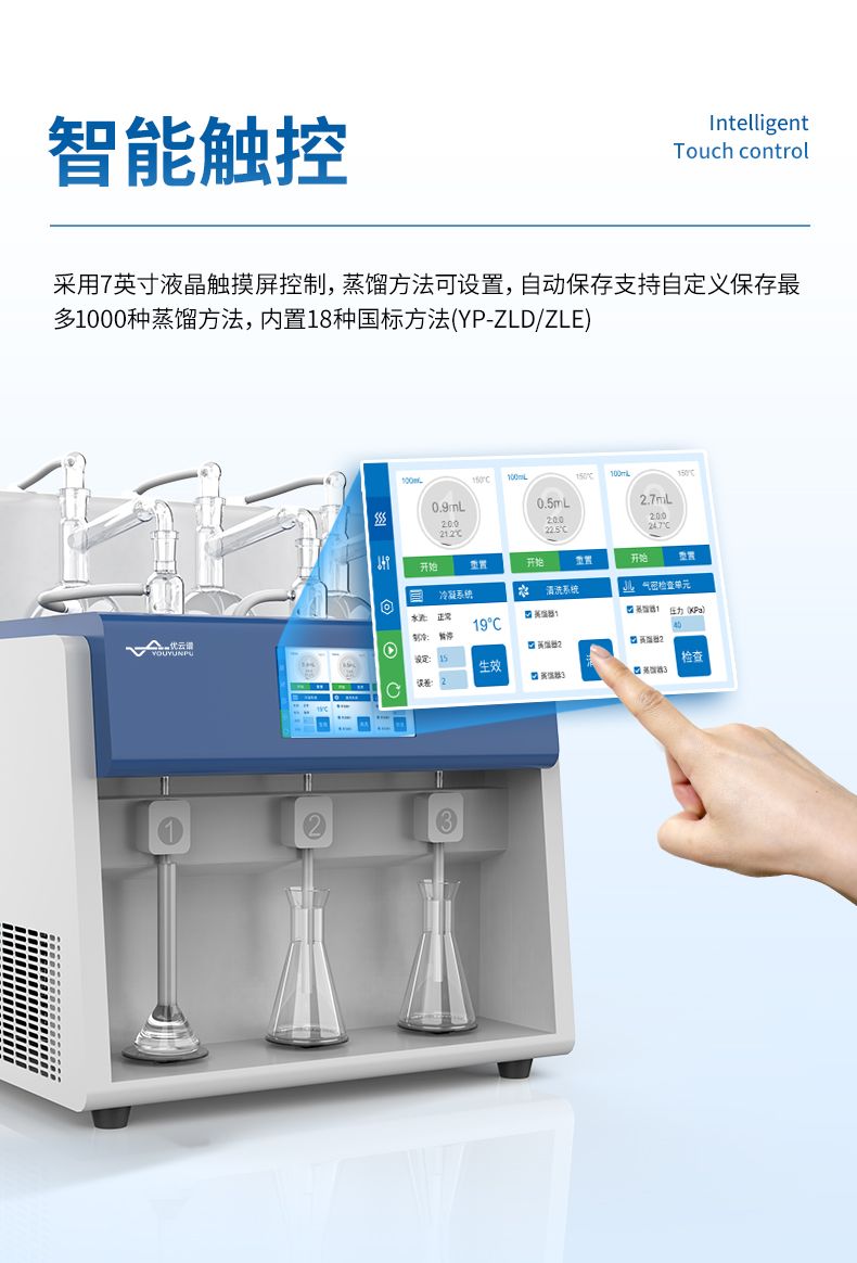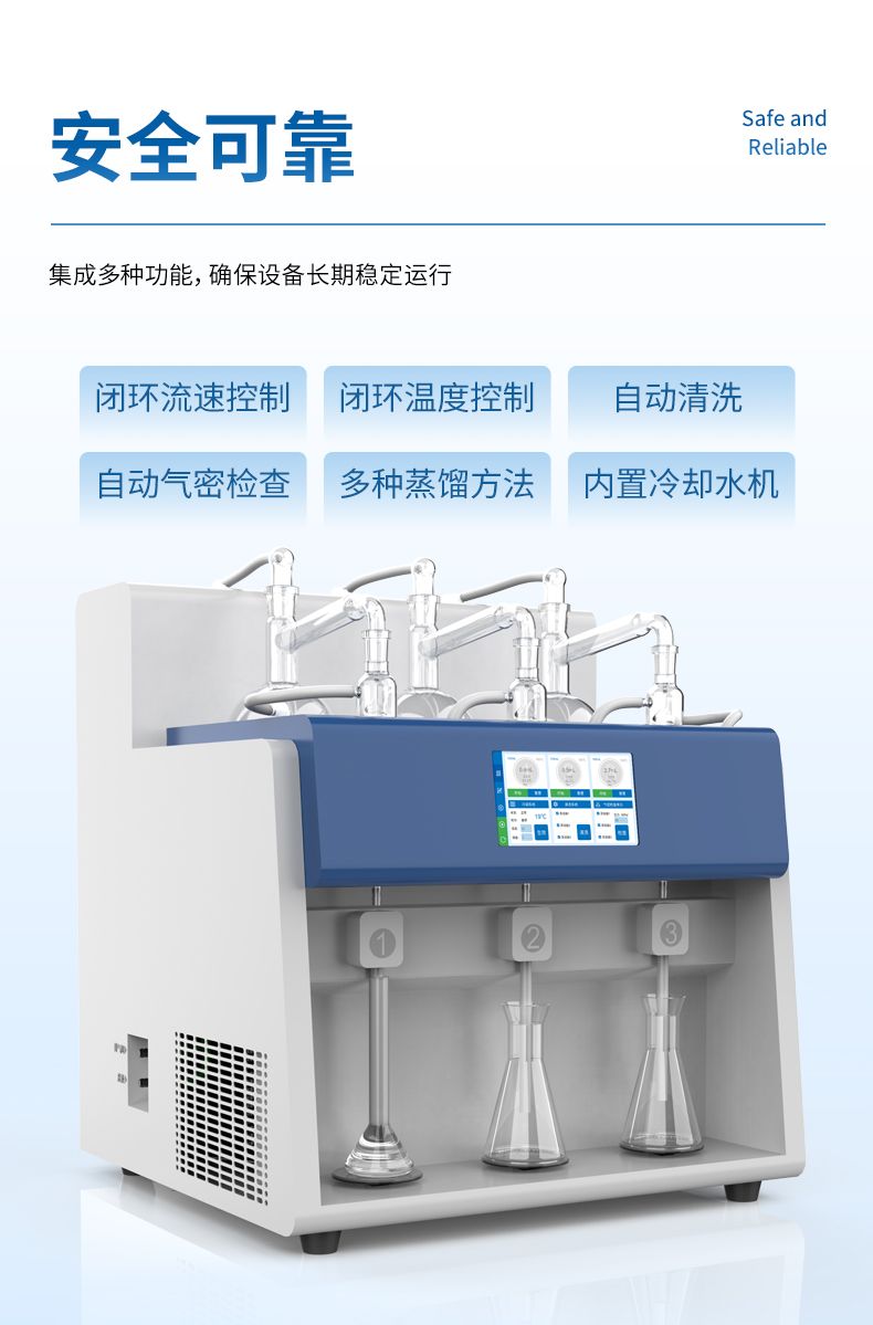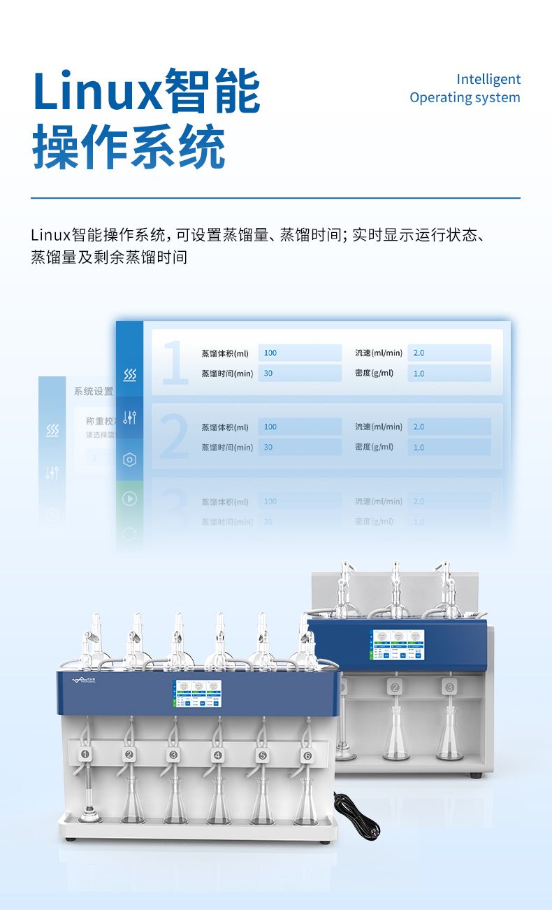 智能一體化蒸餾儀采用智能模塊化設計:方法自定義設置保存/讀取、開機自動調取使用,冷凝單元特殊定制蛇形冷凝管、智能終點控制防過量蒸餾、防倒吸保護,防干燒保護、實現了智能操作簡單、自動蒸餾、美觀實用、節能降耗、節省人工的同時為用戶做樣提高效率節約人員成本開銷。