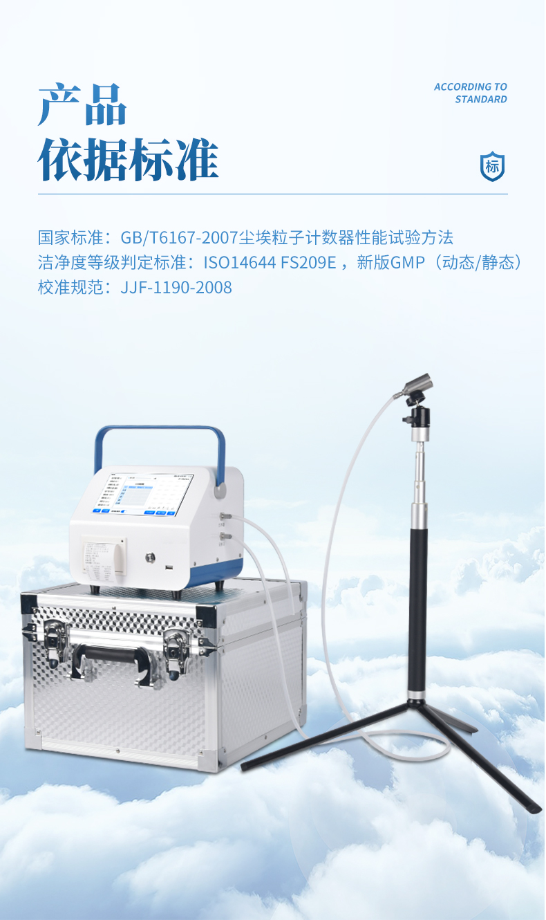 智能塵埃粒子計(jì)數(shù)器,其置信度測(cè)量檢定標(biāo)準(zhǔn)按照國(guó)標(biāo)GB/T6167-2007和校準(zhǔn)規(guī)范JJF1190-2008規(guī)定的條件,對(duì)凈化級(jí)別進(jìn)行自動(dòng)判斷。一次采樣可同時(shí)測(cè)得六個(gè)粒徑通道的塵埃粒子數(shù),并同時(shí)顯示六個(gè)粒徑通道粒子的數(shù)目及其變化情況。