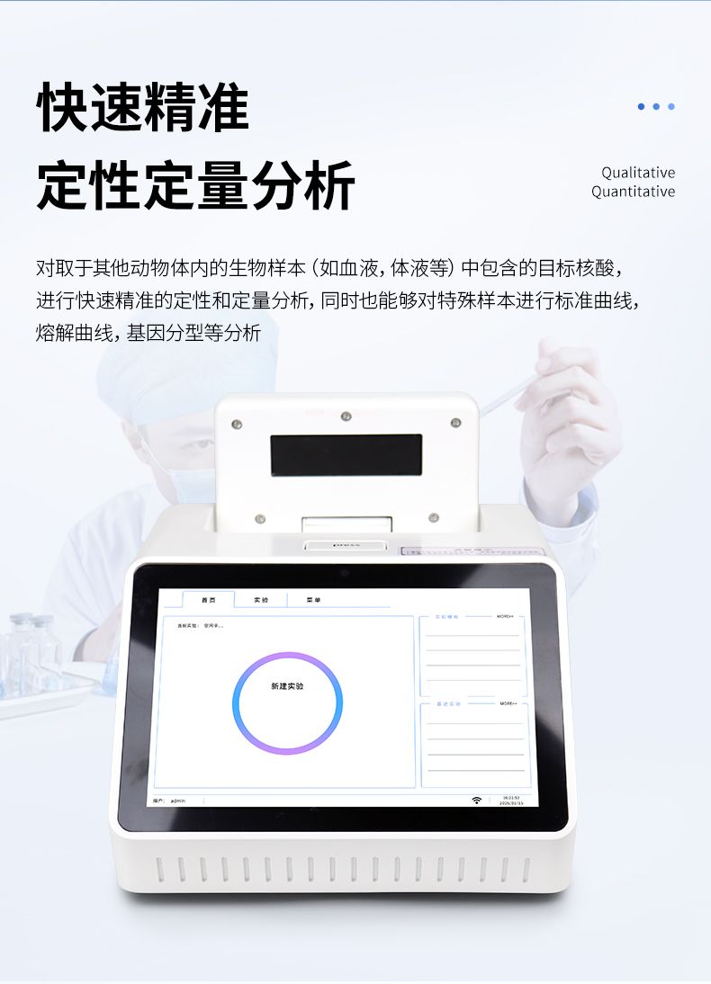 對取于其他動物體內(nèi)的生物樣本(如血液,體液等)中包含的目標(biāo)核酸,進行快速精準(zhǔn)的定性和定量分析,同時也能夠?qū)μ厥鈽颖具M行標(biāo)準(zhǔn)曲線,熔解曲線,基因分型等分析。