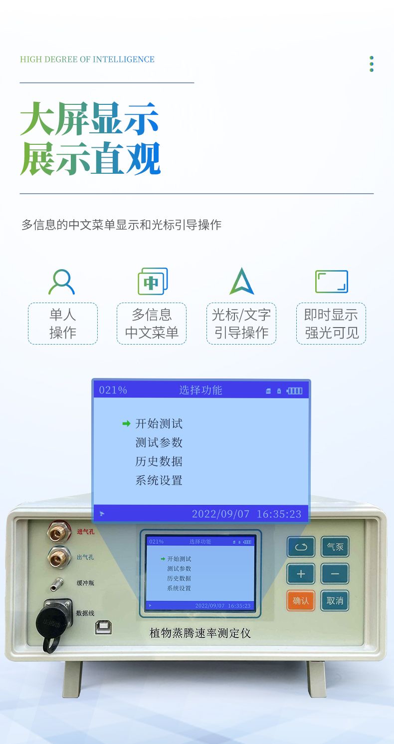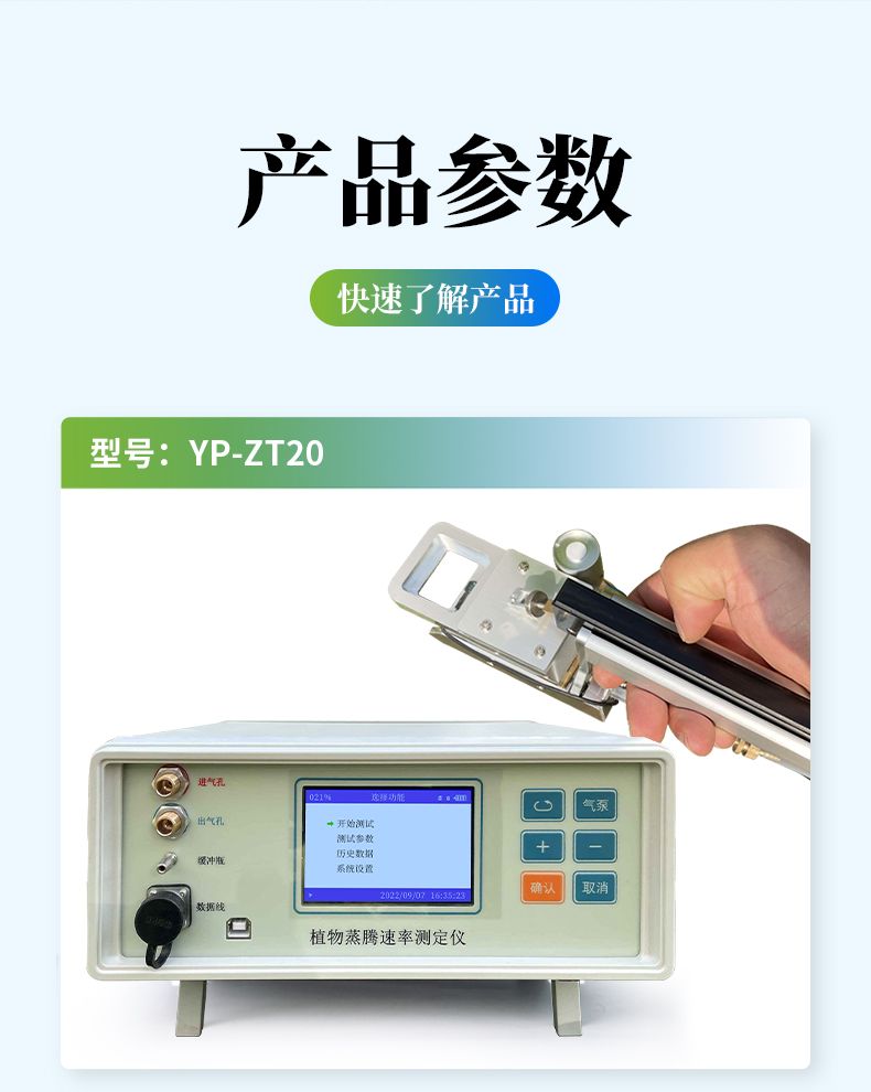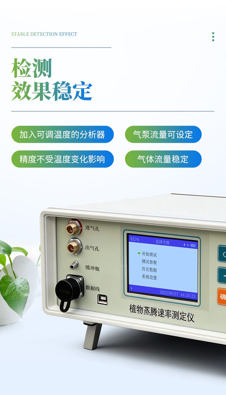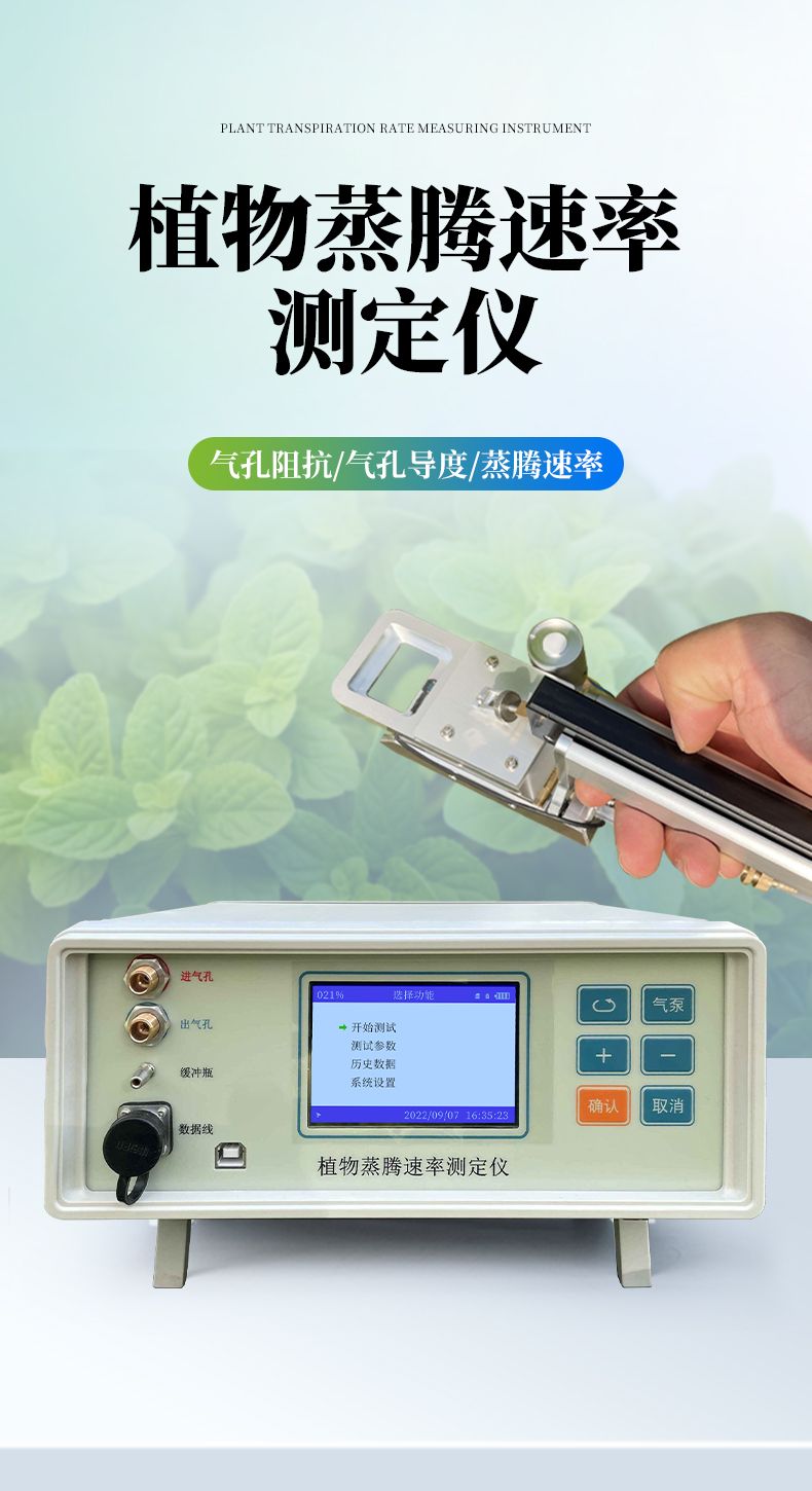 植物蒸騰速率測定儀是一款采用開閉路兩種測量方式的科研型儀器。用來測量各種因素對葉片氣孔行為的影響,可方便、重復、準確地計算出氣孔阻抗、氣孔導度和蒸騰速率,還可測得空氣溫濕度,葉面溫度,光合有效輻射。廣泛的應用于植物葉片的水分生理研究,農作物水分利用、水分脅迫危害、生物化控調節效果等研究。