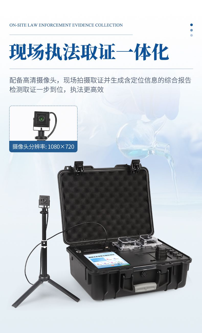 便攜多參數水質檢測儀采用高強度PVC工程塑料手提箱設計,消解檢測一體式設計,其中消解模塊具備雙溫區功能,檢測部分同時具備360°旋轉比色試管檢測和比色皿檢測,安卓智能操作系統,8英寸高清液晶觸摸屏,光纖檢測技術,進口光源,內置大容量鋰電池,便攜多參數水質檢測儀具有性能穩定、測量準確、測定范圍廣、功能強大、操作簡單等特點。