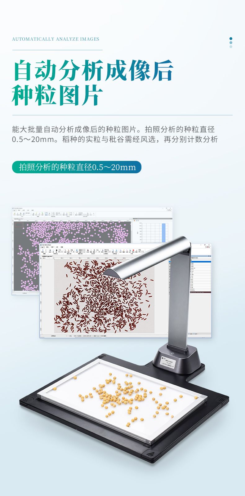 用于各類農作物實粒種子(谷粒、玉米、小麥、油菜籽等)的精確考種,各類糧庫的蟲口計數分析。可兼做表面光滑的昆蟲計數或蟲卵計數(如:米象、蚜蟲、蠶卵、魚籽等),以及被當作種子凈度工作臺用于種子凈度檢驗。