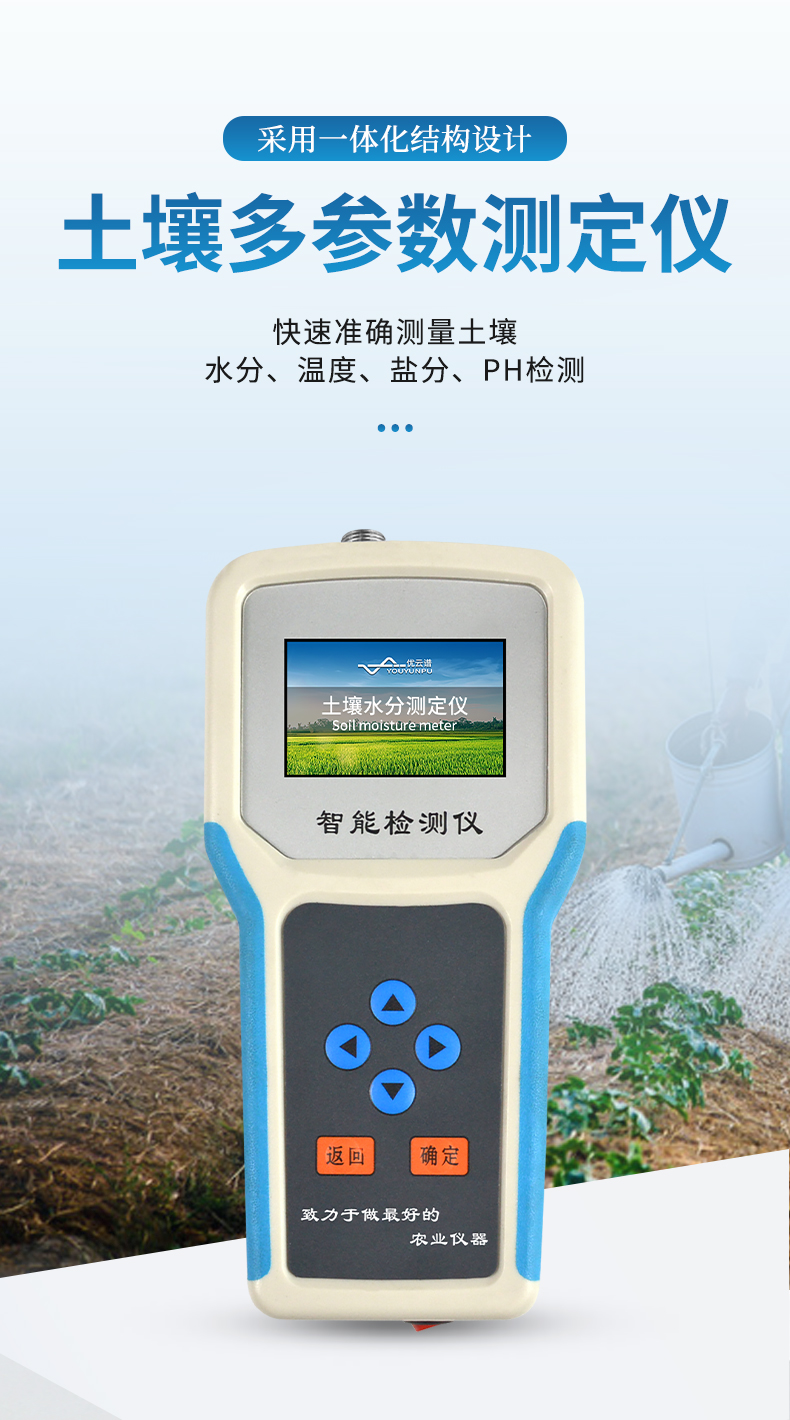 土壤水分溫度鹽分PH測(cè)定儀采用一體化結(jié)構(gòu)設(shè)計(jì),可快速準(zhǔn)確測(cè)量土壤中含水量、溫度、電導(dǎo)率(鹽分)、酸堿度,可對(duì)多處樣地、不同土壤深度的水分含量溫度鹽分和PH進(jìn)行快速檢測(cè)和長(zhǎng)期連續(xù)監(jiān)測(cè)。