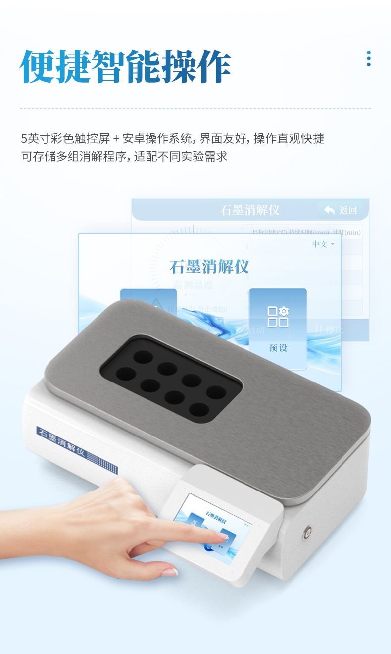 本石墨消解儀是替代傳統電熱板、電熱爐的理想選擇,同時儀器采用經典的30 mm孔徑設計,完美兼容市場主流的50 mL、100 mL消解管,是實驗室值得信賴的得力助手。