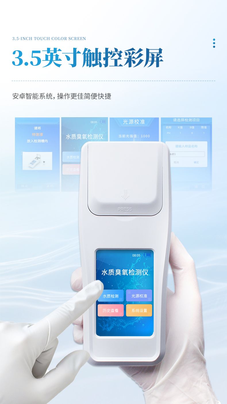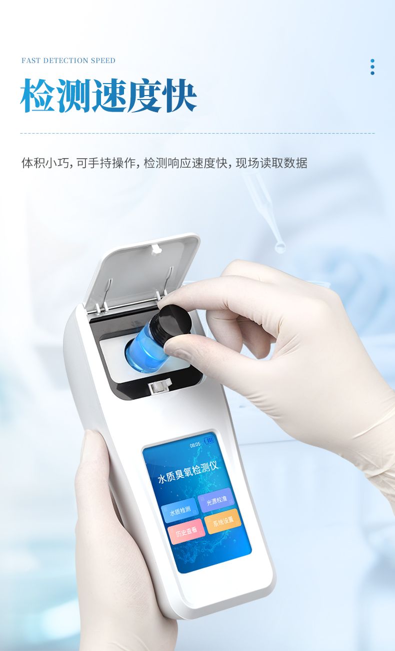 便攜式水質臭氧檢測儀器配合快速顯色檢測試劑,可“快速、簡單、準確、穩定”進行測量,擁有精美的外觀造型,簡單的操作界面,準確的檢測系統,幫助用戶獲得精細的數據,可更準確、有效的分析水體狀況,提前預防,及時避免損失。