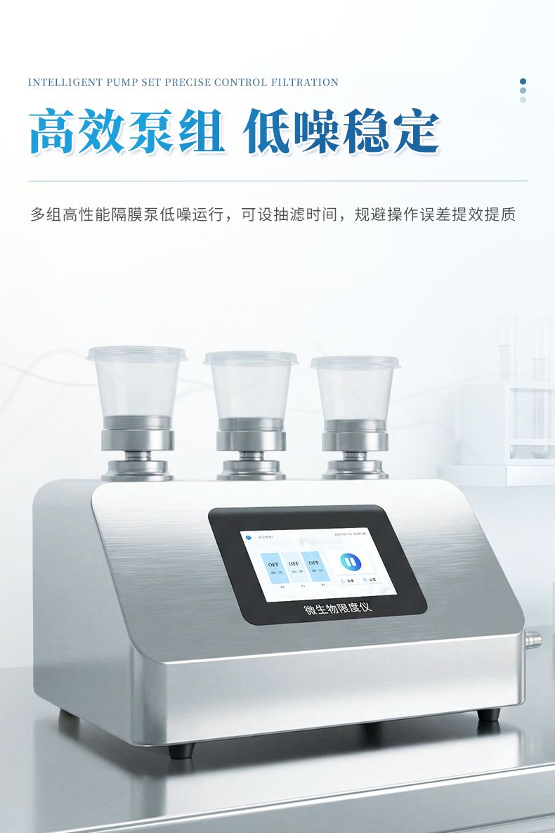 微生物限度儀是依據《中國藥典》及相關行業標準設計制造的專用微生物檢測設備。該設備通過負壓抽濾方式將供試液中的微生物截留于濾膜上,經培養后形成可見菌落,并通過計數準確測定樣品中的含菌量。適用于藥品、食品、化妝品、化工等行業的微生物限度檢查。