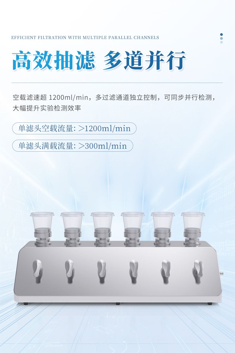5. 多通道獨立控制:多個過濾單元可同時或單獨啟停,滿足并行檢測需求,提高工作效率。