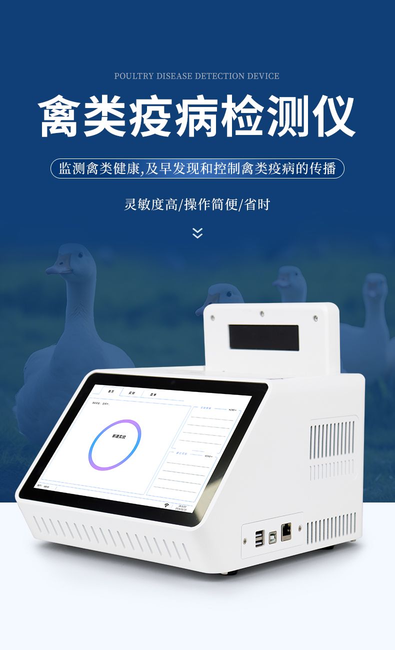 禽類疫病檢測儀是用于檢測禽類(雞、鴨、鵝等)中雞傳染性法氏囊炎病毒(IBDV)、雞新城疫病毒(NDV)、傳染性支氣管炎病毒(IBV)、禽白血病、禽流感病毒(AIV)、鴨瘟病病毒(DPV)、小鵝瘟等潛在病原體的設備。這些檢測儀器主要用于監測禽類的健康狀況,及早發現和控制禽類疫病的傳播。