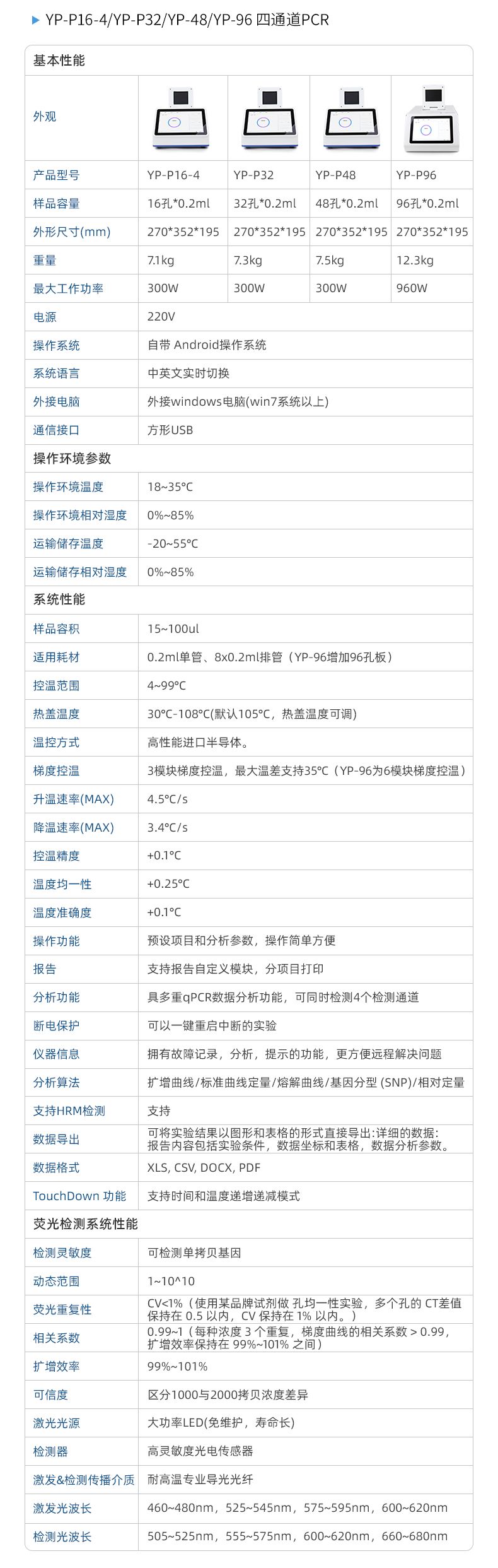 | 分析算法 | 擴增曲線,標準曲線定量、熔解曲線,基因分型(SNP),相對定量 |