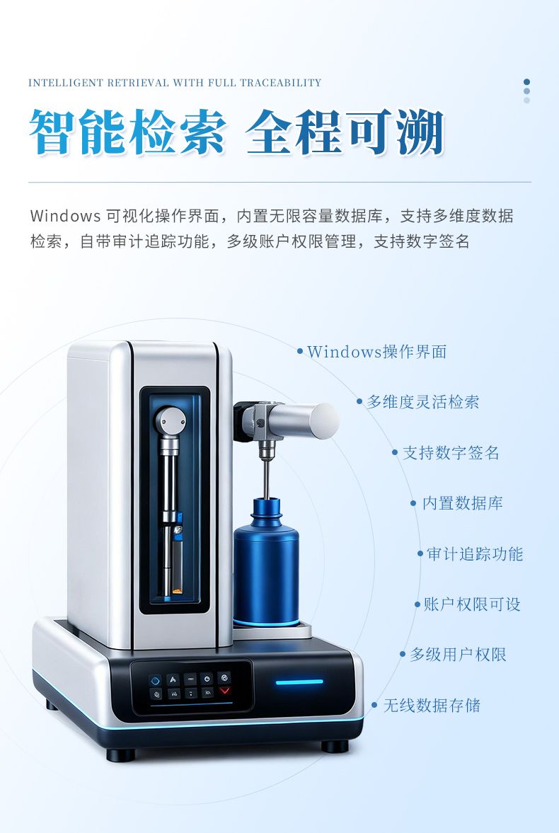 l Windows操作界面,內置數據庫,無限數據存儲,可使用測試標準、樣品名稱、樣品批號、測試人員、測試時間等多種方式進行檢索查詢