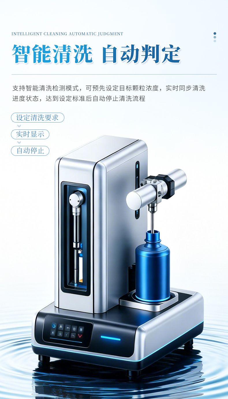 l 可進行清洗檢測,預先設定目標清洗要求顆粒濃度,清洗過程中實時顯示清洗狀況,并在達到要求時自動停止