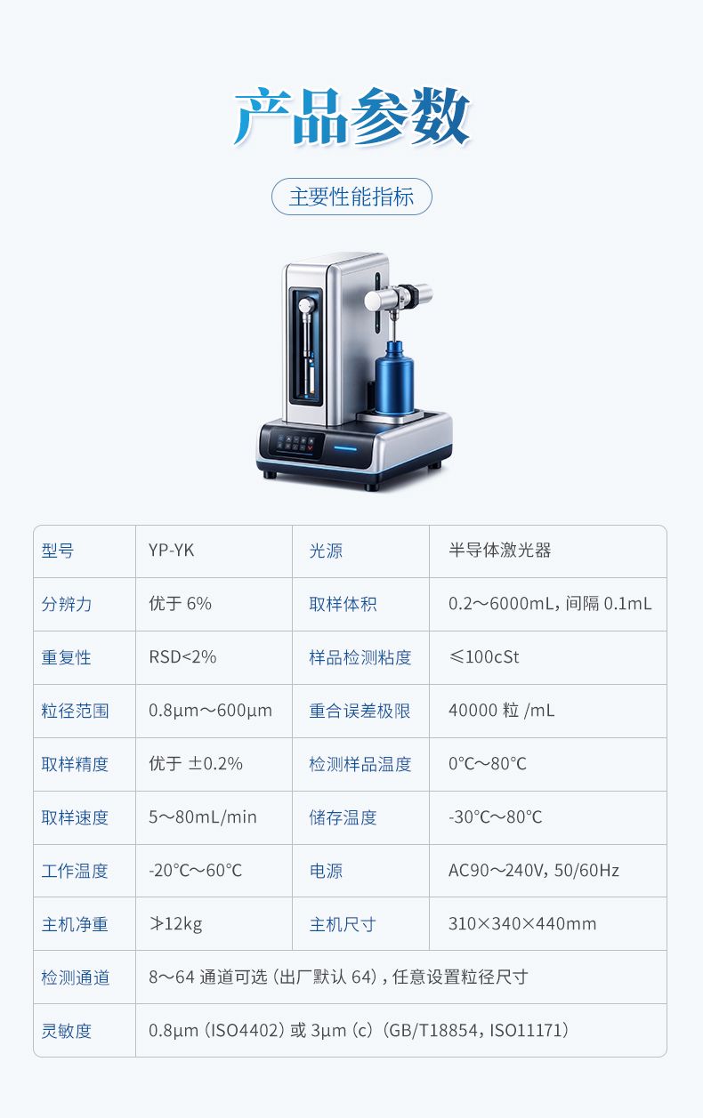 該儀器采用光阻(遮光)法計數原理研制。可提供快速、準確、可靠、可重復的檢測結果,適用于多種低粘度液體中固體顆粒物尺寸和數量檢測。廣泛應用于航空航天、電力半導體、石油化工、汽車制造等領域低粘度油液污染度分析、精密部件潔凈度評估、化學試劑與清洗劑微粒檢測,以及純化液體與超純水微粒測定。