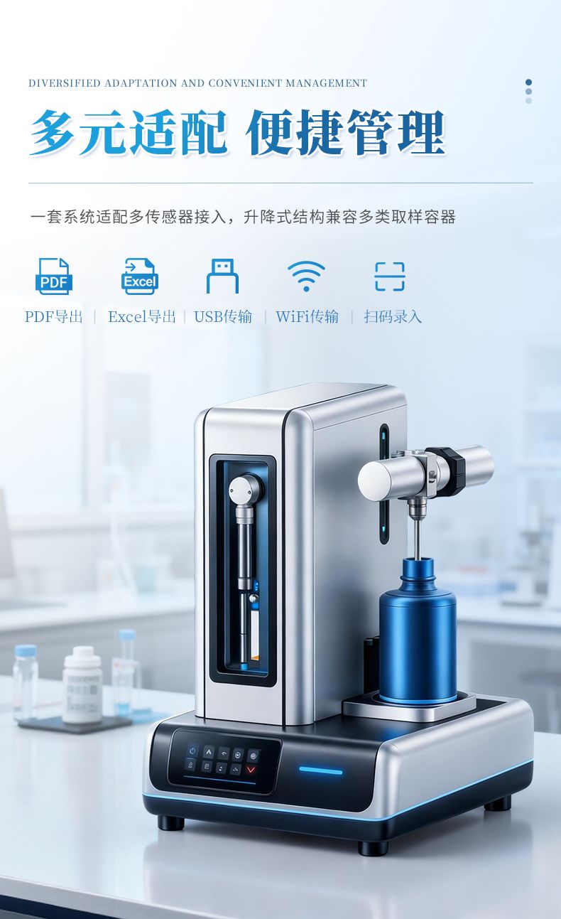 l 升降式傳感器設計,適用多種取樣容器,滿足不同行業(yè)的檢測要求