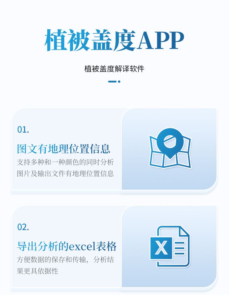 1. 適配安卓移動客戶端, 軟件提供豐富的圖像分割模式,軟件內置植被、土壤特征模型,支持廣泛地域植被蓋度和郁閉度測量計算。